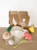 - Un sac en toile rempli de petits objets soigneusement choisis pour susciter des discussions en famille, ouvrir le dialogue, encourager l’écoute.