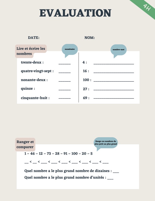 PDF de 13 pages pour vérifier les connaissances de votre enfant en Maths pour la fin du cycle 1.